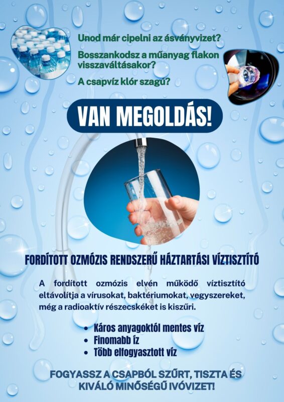 - Évente vagy a szűrők cseréjekor javasolt a teljes rendszer fertőtleníteni.
